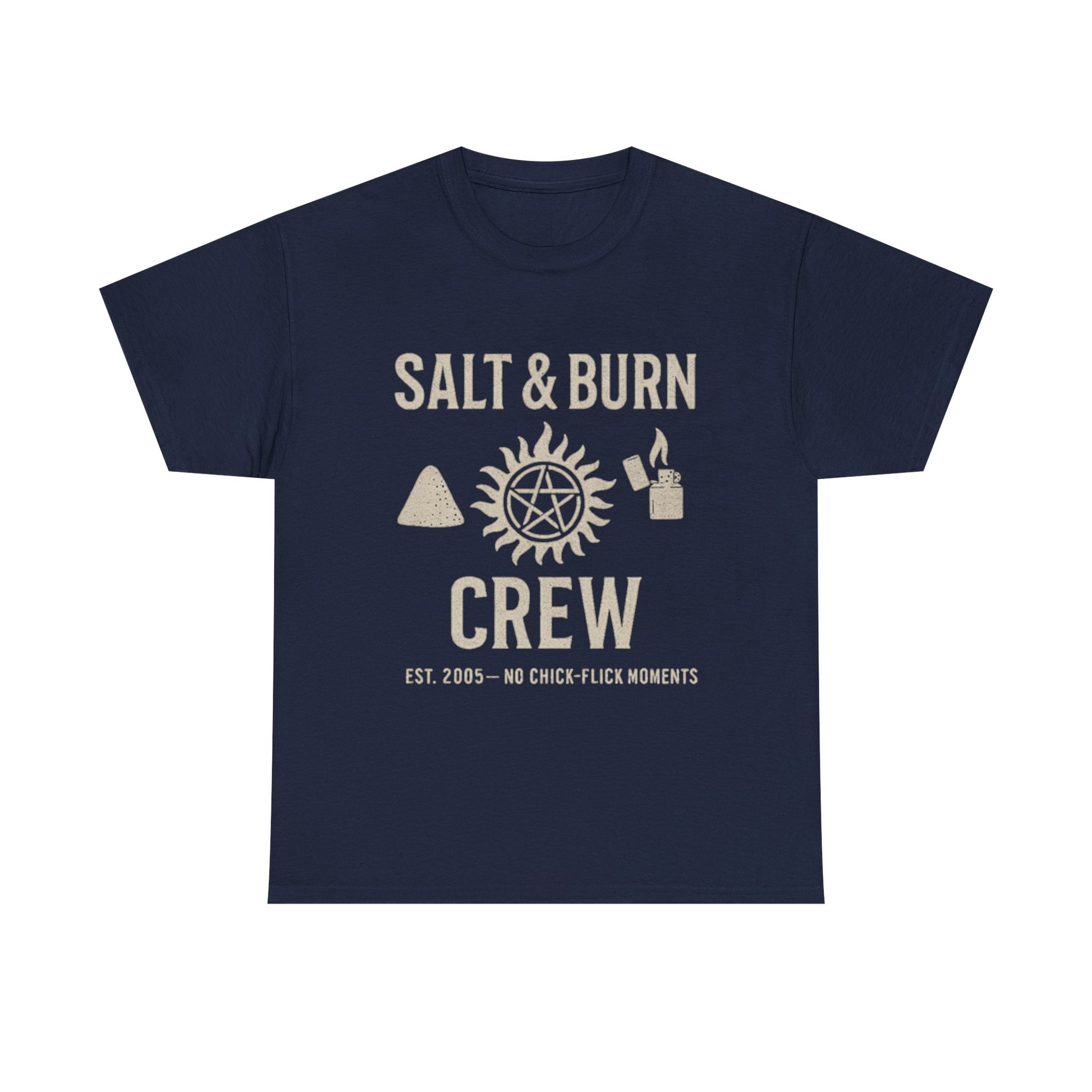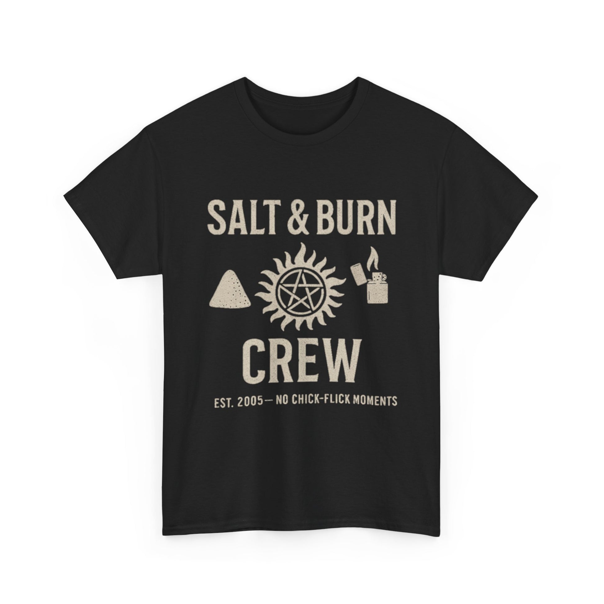 Join the Salt & Burn Crew — where hunters suit up, roads stretch for miles, and chick-flick moments get torched. This tee isn't just clothing; it's a badge of honor for fans who live by the creed: "Saving people, hunting things."